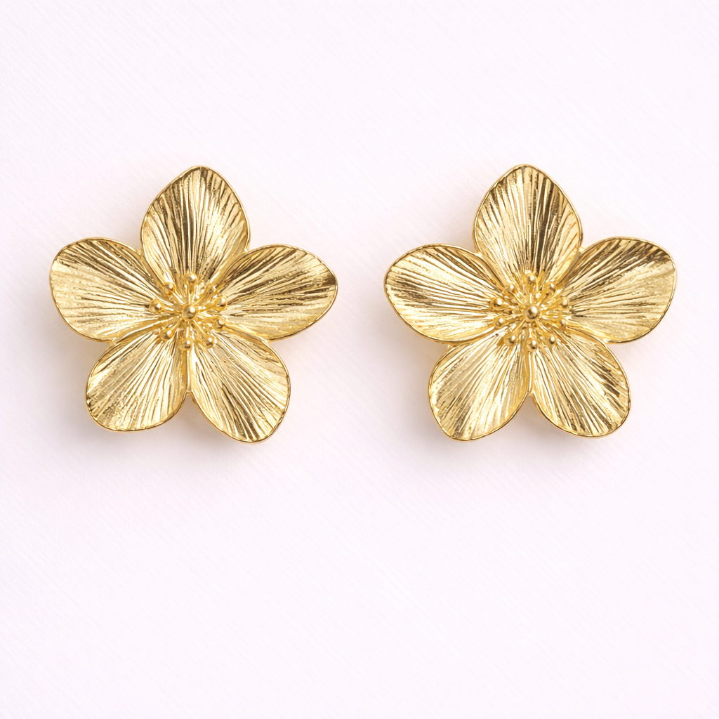 A bold floral statement shaped with refined artistry. These sculpted flower earrings are designed with textured petals and a softly raised center, creating depth and dimension through intricate surface detailing.