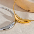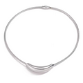 A sculptural expression of modern minimalism, this necklace features a fluid curved centerpiece that reflects light with a sleek, mirror-like finish. Designed to rest elegantly along the collarbone, its refined silhouette creates a bold yet effortless statement — balancing contemporary design with timeless sophistication.