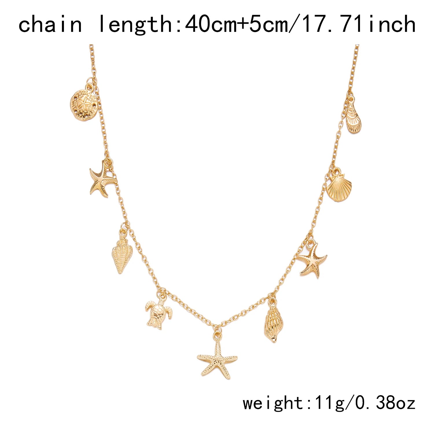 A delicate ocean-inspired necklace designed to evoke effortless coastal elegance. Suspended from a fine gold chain, miniature shell and starfish charms create gentle movement and soft texture, reflecting light with a subtle, polished glow. Its refined silhouette blends playful detail with a minimalist finish, making it an expressive yet timeless piece for both relaxed styling and elevated summer looks.