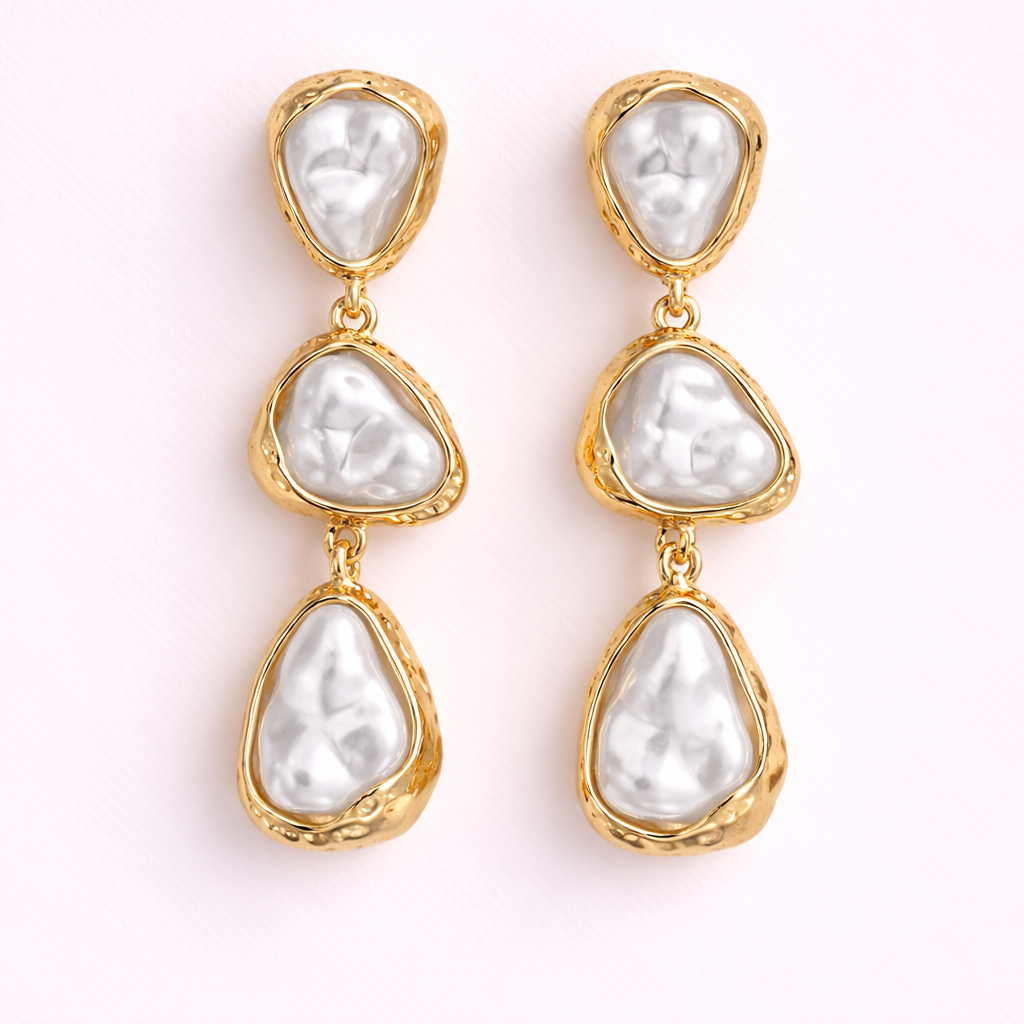 Design: Triple-drop organic pearl earrings