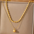 Design: Double-layer necklace featuring a polished orb pendant and beaded upper chain