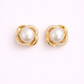 A delicate balance of brilliance and softness. These refined stud earrings feature a luminous central pearl embraced by a sculpted metal swirl, delicately framed with pavé-set zirconia for subtle radiance.