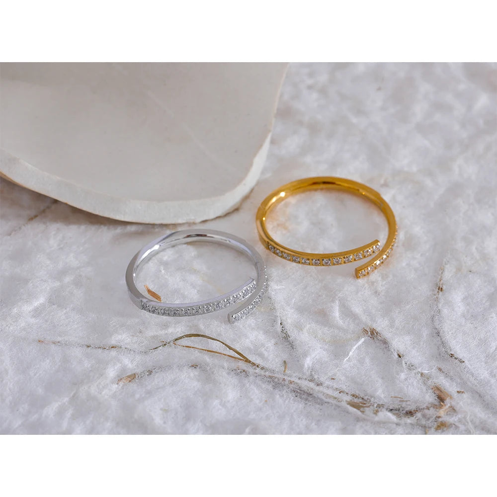 The open silhouette introduces lightness and flexibility, while the linear pavé detailing adds a precise, contemporary edge. Elegant and versatile, this piece offers a quiet statement of sophistication for everyday wear or elevated styling.